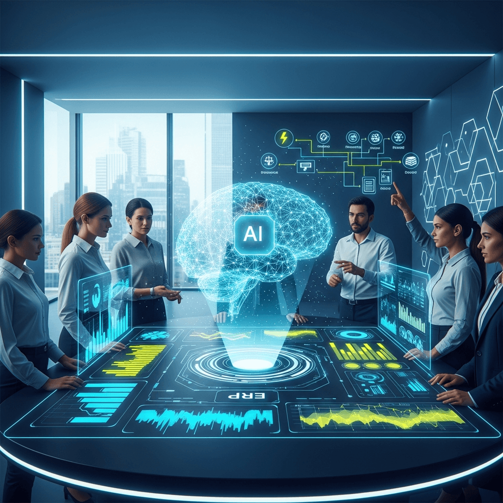 Un ERP classique structure les données. Un ERP IA ajoute des agents capables d’assister dans les tâches répétitives : pré-remplissage de devis, détection d’écarts, alertes sur incohérences, aide au pilotage. L’IA agit comme un assistant intégré au système.